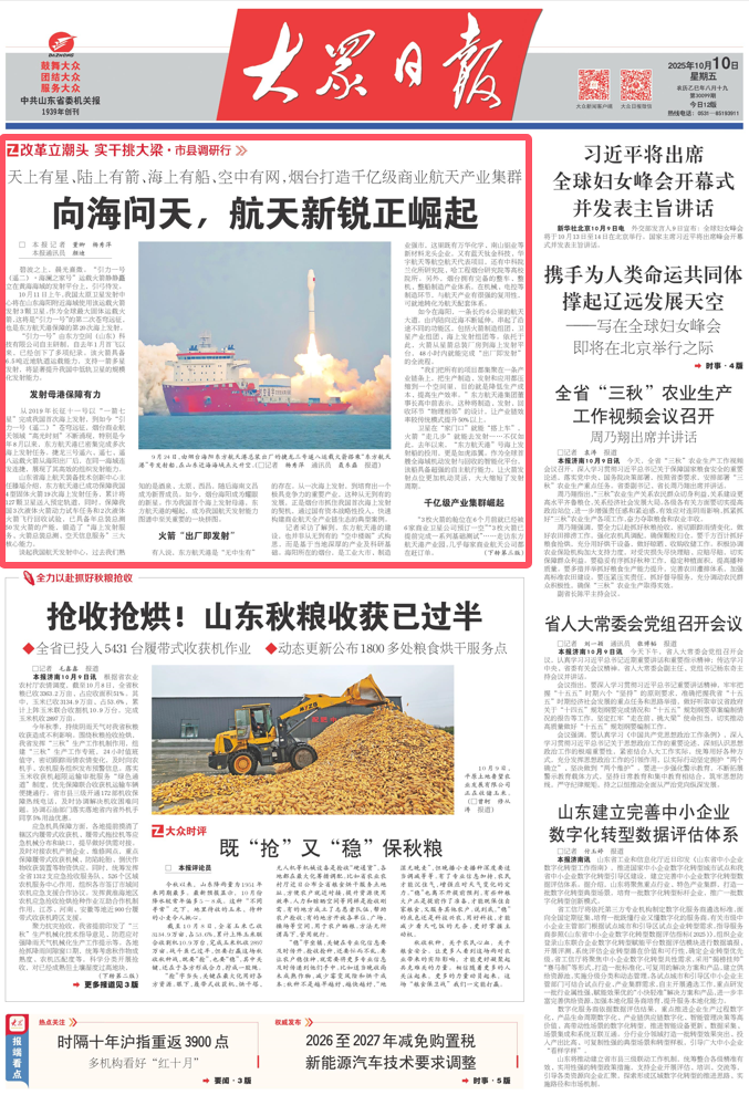天上有星、陆上有箭、海上有船、空中有网诚利和 ,烟台打造千亿级商业航天产业集群